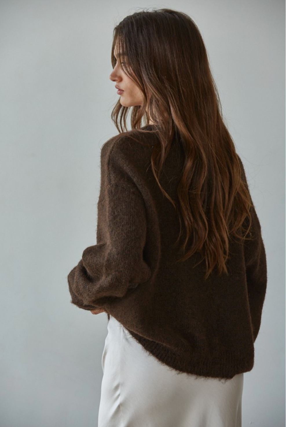 Dark Chocolate Knit Sweater Long Sleeve Cardigan
